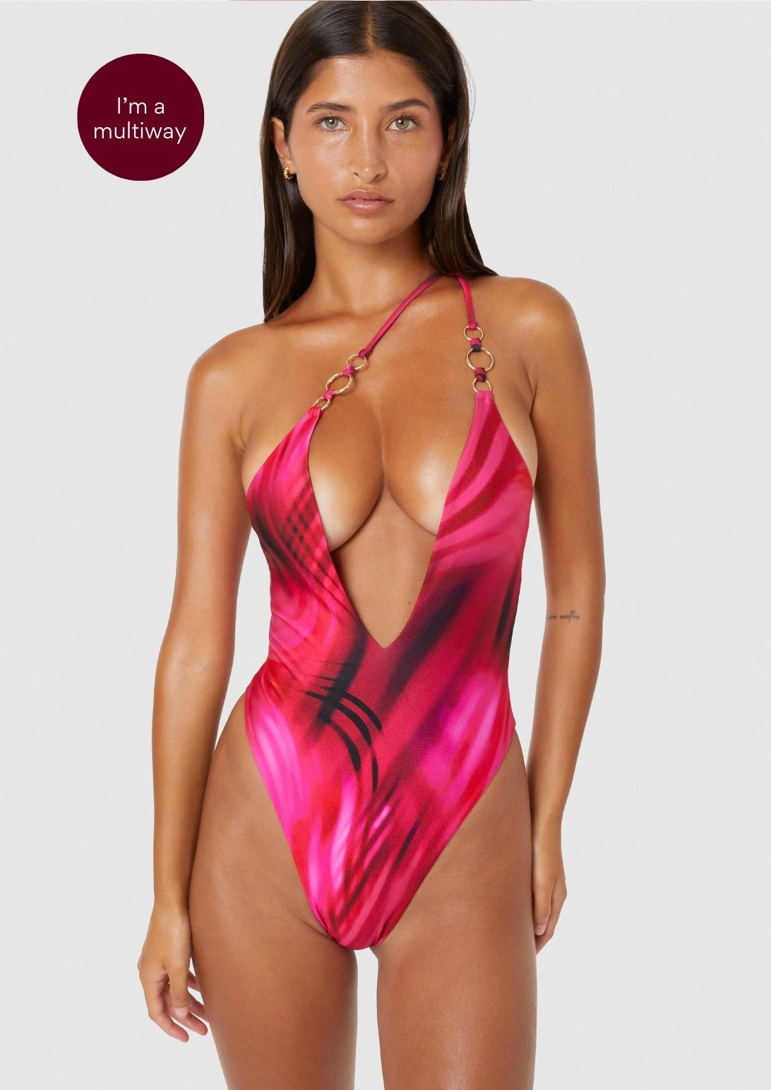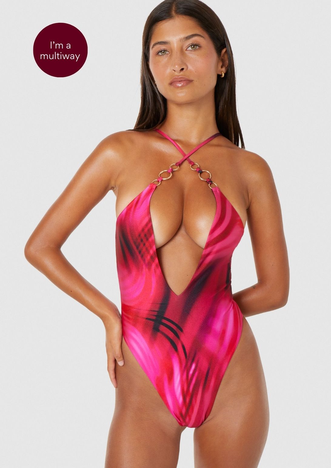 The multi-wearable CELINE one-piece is a double lined front plunge, high cut swimsuit that pulls you in at all the right places. Turning bikini lovers into swimsuit lovers one design at a time. With adjustable straps & swan hooks detailing the back enabling you to design your own swimsuit that moulds to your body and shape. Crafted in a recycled super high sheen material.
