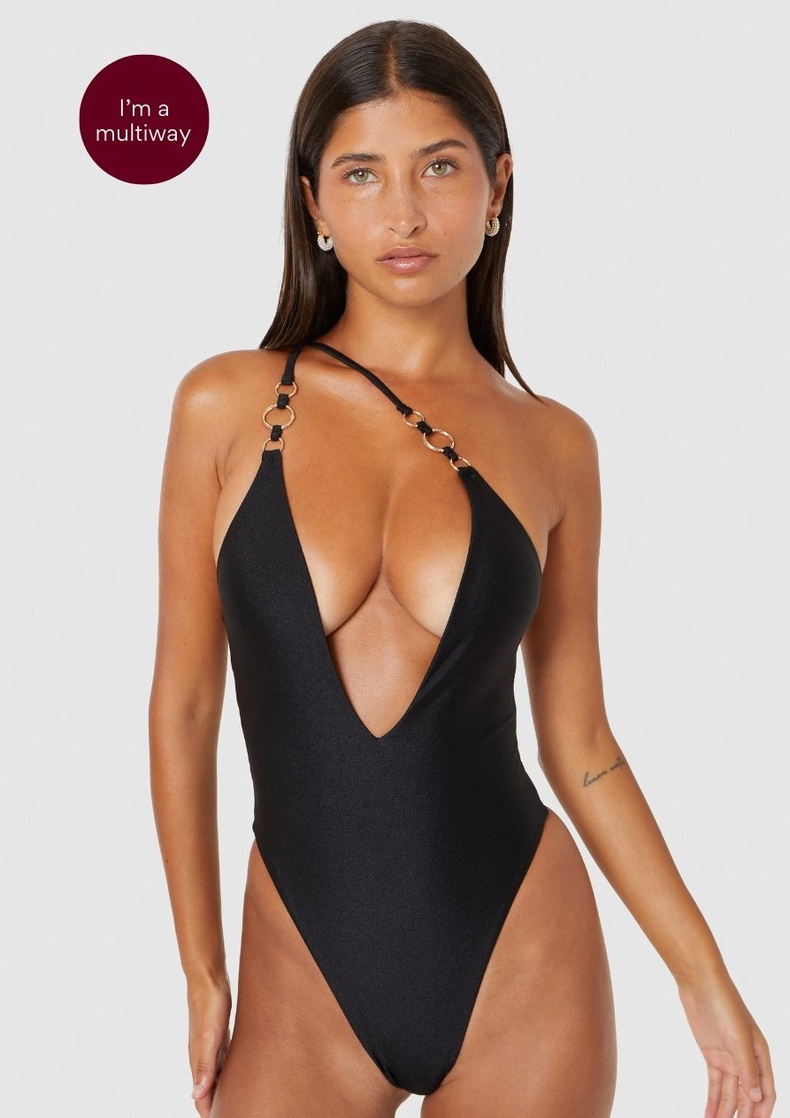 The multi-wearable CELINE one-piece is a double lined front plunge, high cut swimsuit that pulls you in at all the right places. Turning bikini lovers into swimsuit lovers one design at a time. With adjustable straps & swan hooks detailing the back enabling you to design your own swimsuit that moulds to your body and shape. Crafted in a recycled super high sheen material.