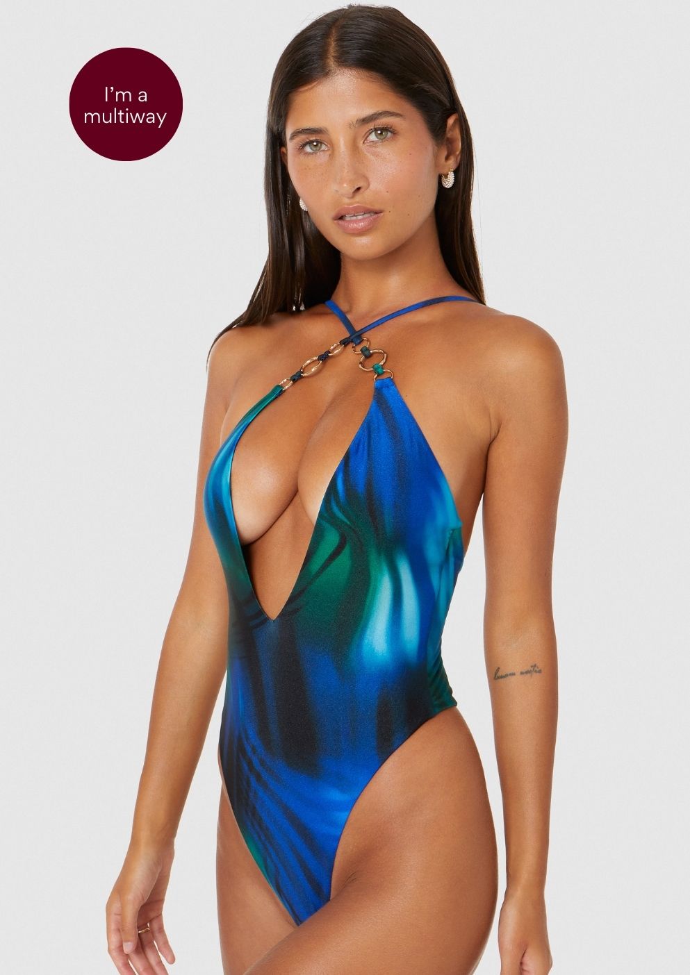 The multi-wearable CELINE one-piece is a double lined front plunge, high cut swimsuit that pulls you in at all the right places. Turning bikini lovers into swimsuit lovers one design at a time. With adjustable straps & swan hooks detailing the back enabling you to design your own swimsuit that moulds to your body and shape. Crafted in a recycled super high sheen material.