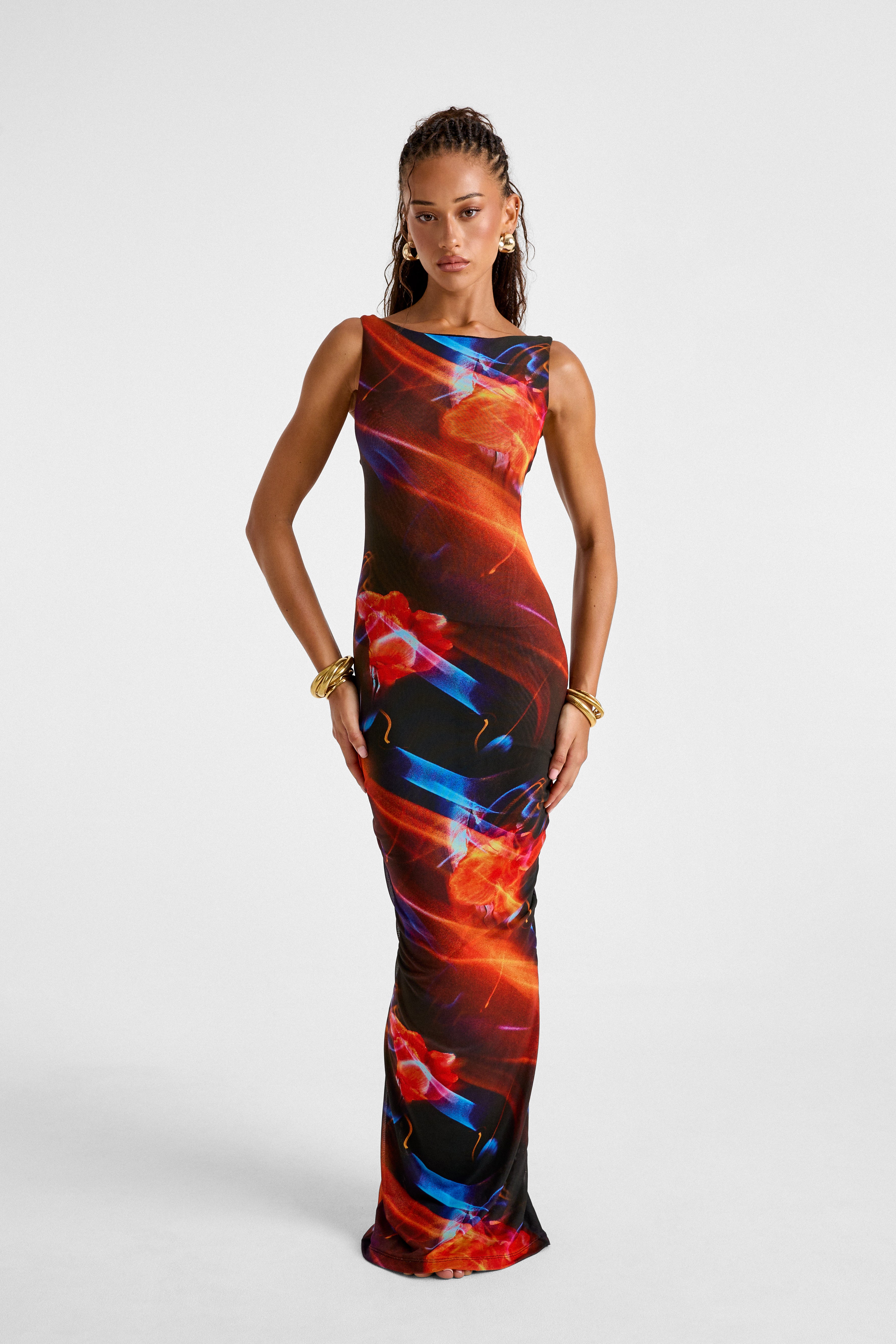 This dress has gone viral on TikTok for all the right reasons... and of course we were going to release her again in our newest signature Haze print. She's triple lined made from two layers of soft mesh for comfort following by a layer of powermesh to suck you in in all the right places. The V cut back is there to show the parts you want and hide those parts you don't. She's really something special.